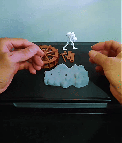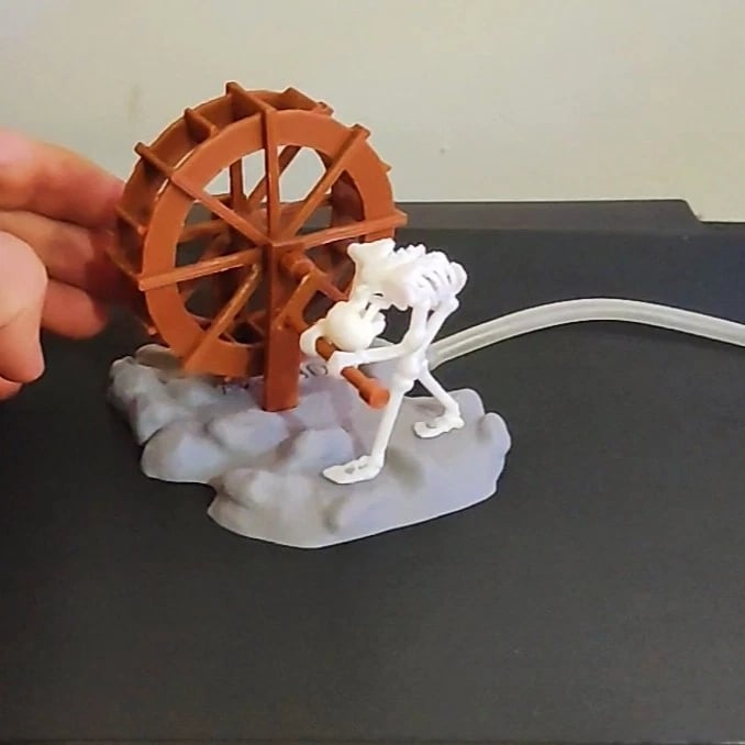 Simply attach standard airline tubing (not included) to the port on the skeleton's back. The airflow makes the figure move. The more powerful the pump, the faster the action.